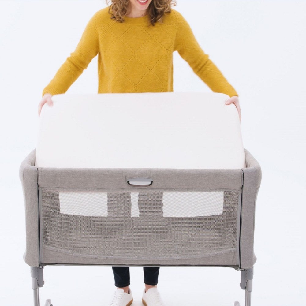 Simple and stylish, 100% cotton, fitted sheet for use with the Joie Roomie range of side sleeping cribs – Roomie and Roomie Glide. Designed to fit perfectly over the mattress to give a comfortable and soft surface next to baby's delicate skin, for a peaceful night's sleep.